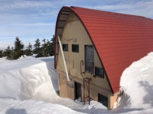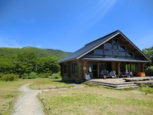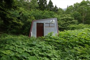 弥兵衛平湿原の明月湖畔に建っている避難小屋。