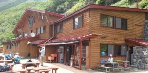 上高地バスターミナルから河童橋を越えて、明神橋を越えて、歩いていったところにある立派なロッジ風の建物、それが徳澤園です。
